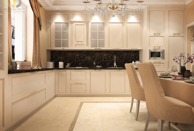 Классические расцветки кухонного гарнитура: бежево-коричневая элегантность