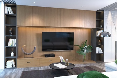 Должна ли стенка в гостиную обязательно быть под дерево?