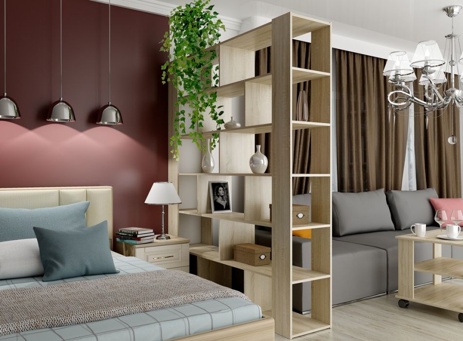 Корпусную мебель можно превратить в необычный способ зонирования помещений. Квартира-студия, комнаты большого метража сейчас популярны, но цельное пространство не оставляет мест для уединения. Зоны, предназначенные для чтения, учебы, занятий хобби, просмотра фильмов или наслаждения музыкой, теряют свое значение, не давая возможности сосредоточиться на запланированном деле. Их можно отгородить ширмами, развернуть стол или кресло лицом к стене, но модули, обрамляющие уголок досуга, будут смотреться значительно лучше. К тому же на полках можно разместить книги, материалы, другие нужные вещи.
