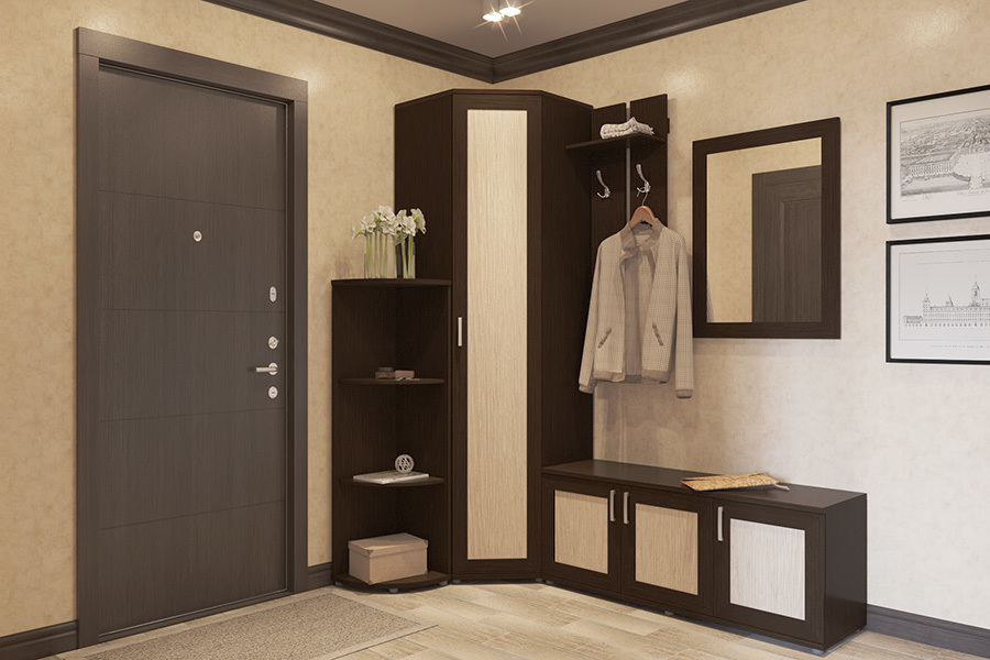 Все загрязнения в квартиру попадают через коридор. Одежда и обувь для улицы каждый раз покрывается новыми микроорганизмами, и редко кто из владельцев полностью чистит и моет ее по возвращению домой. Следовательно, мебель должна позволять минимизировать контакт с микробами. В современных прихожих оборудуется отделение для курток, пальто и ветровок. Варианты размещения обуви разнообразны, можно предусмотреть отдельные ниши для роликов, беговых кроссовок, рыболовной амуниции, мячей, другого инвентаря.