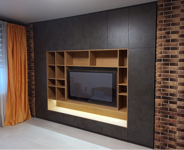 Мебельная стенка позволяет совместить хранение вещей за закрытыми дверцами и витрины, где можно выставить предметы, которые хочется держать на виду. Раньше конструкция предусматривала застекленную витрину, сегодня можно не использовать стекло, сделать нишу для телевизора, разную высоту шкафчиков и другие интересные дизайнерские решения. У компании K-FABRIKA много реализованных проектов стенок. Можно купить модель в гостиную или прихожую, предварительно выбрав подходящую форму, размер, количество модулей и их конструкцию.