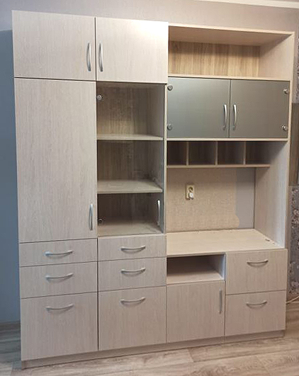 Приходите в K-FABRIKA купить стенку: угловую или прямую, с витриной или незастекленными полками. Подробное обсуждение деталей со специалистом дает возможность разработать идеальный проект.
