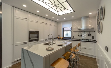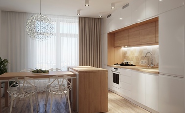 Заказывая кухню с островом у нас, вы можете воспользоваться услугой выезда дизайнера на дом. Просто сообщите, когда вам будет удобнее принять нашего специалиста, и он прибудет точно в назначенное время. Дизайнер снимет замеры помещения, отметит на плане все его особенности, а затем займется разработкой проекта. После согласования проект отправится на производство. Изготовление кухни не займет много времени, поскольку у нас большие складские запасы материалов и фурнитуры.
